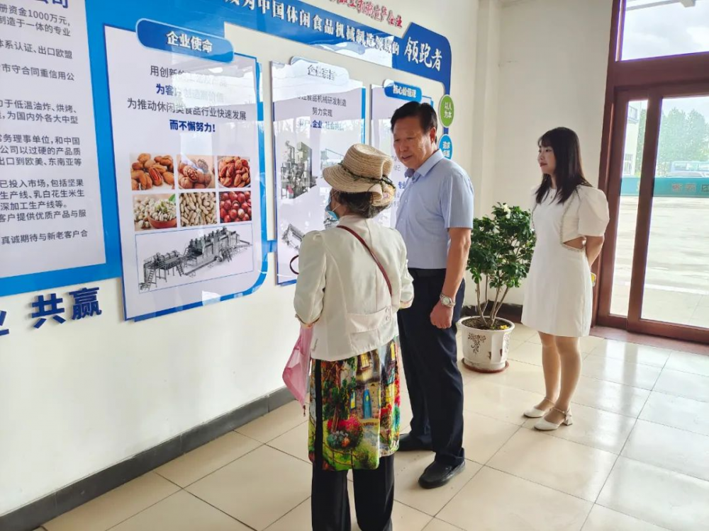 近日,中國食品工業(yè)協(xié)會堅果果干專業(yè)委員會常務副會長翁洋洋率領(lǐng)協(xié)會工作人員一行,蒞臨我司進行考察調(diào)研,并就相關(guān)設(shè)備技術(shù)進行指導工作。